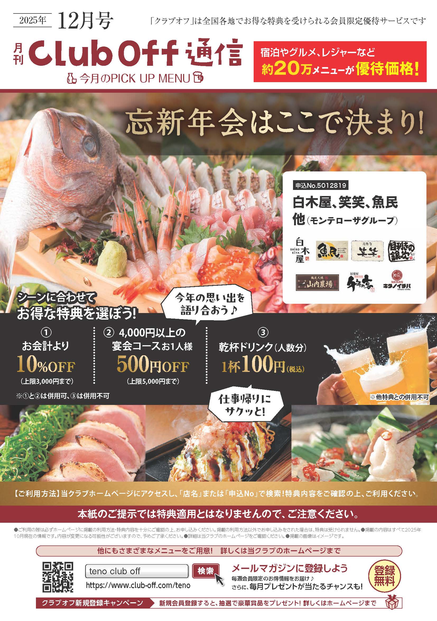 無料で、国内外約75,000ヵ所の施設やサービスが「会員優待価格」でご利用できます。